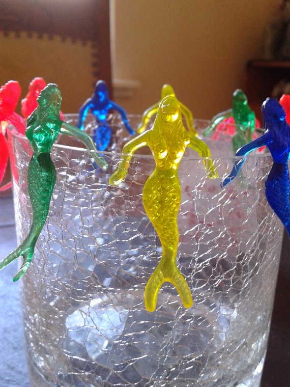 Just wanted you to know the party was a huge success. Thank you SO much for the mermaids. They were the perfect accessory for all the drinks. I attached two pics in case you wanted to see...sadly in the second pic of the kids drinks the "mermaid potion", the mermaids weren't on the cups yet...but, I got them on there right before the kids got there. They all thought they were so neat. And the adults LOVED the Ursula-tini's and sunset mermaid mimosas. ;) Thanks again...and good luck with all your collecting and selling.